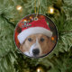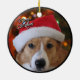 Cute photo of a Pembroke Welsh Corgi wearing a Santa hat, on a Christmas ornament. Adorable dog lover decoration!