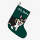 Perfect! Exactly what I ordered! I uploaded a picture of my blue chow, and the screen print was incredible. the back side of the stocking was the red and black checkered print. my puppy's name was also printed on the cuff of the stocking. PERFECT! Highly recommend this product! My puppy's name was screen printed onto the cuff of the stocking, the font was perfect!