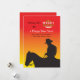 The silhouette of a cowboy against a sunset sky creates this handsome card. The holiday word can be dragged to any location, made larger or smaller (+-) or eliminated making this a versatile invitation. Cowboy silhouette by Vectoropenstock.com.