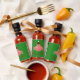 This awesome set of hot sauce favors features a funny graphic design image of a crab wearing a santa hat. The crab is pink and has big silly eyes on stalks and huge pinchy claws. A fun gift for everyone whether Christmas makes them crabby or not.