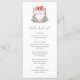 These stunning, vintage style holiday wedding menus feature a colorful, whimsical Christmas design. A bright red crest with your monogram and a bow is surrounded by watercolor green botanical foliage.