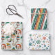 This coordinating set of three sheets of gift wrap features one sheet of funny and very merry Christmas gift wrapping paper will delight your friends and family when you personalize it with the photos of your kids, parents, friends and even pets, putting the whole crazy cast of characters in silly holiday Santa and elf hats. There is even a pair of reindeer antlers for that extra special person in your life. The second sheet has stripes and an editable message of cheer. Finally, the third sheet is a pattern of snowflakes in coordinating colors to tie the whole stack of gifts together for a cohesive look. Photography by Shanna Russell Photography