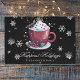 Bring festive warmth to your holiday table with this personalized Black Christmas Cup of Hot Chocolate placemat. Featuring a charming cup of hot chocolate surrounded by falling snow and delicate white snowflakes. The phrase Happiest Holidays is beautifully written in elegant script, while your family name appears in clean modern typography—making it a heartfelt seasonal accent for your dining decor. Perfect for family meals, cocoa bars, or holiday gatherings, this placemat combines cozy style and function, creating a joyful and welcoming setting for every celebration.