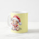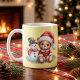Ceramic Christmas mug with a sweet bear design wearing Santa hat accompanied by a friendly snowman. Its soft-toned background highlights the illustration, creating a cozy and tender style. Ideal for enjoying hot drinks in winter or as a special gift during the holidays.