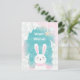 Cute white bunny in warm pink scarf makes any heart warm in cold winter holidays