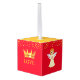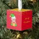Christmas cute elf on red and gold metallic look polka dots Cube Ornament. Let love rule!