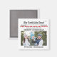 This design features a Christmas holiday cute whimsical fun magnet with a simple typography funny photo picture, a red and white candy cane, Santa Claus the north pole, a newspaper newspaper print lettering, a Christmas holiday cute gift idea, a creative unique cool funny fun, refrigerator magnetic fridge photo, a cute family holiday keepsake, Christmas stocking stuffer gifting