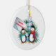 Christmas Cute Penguins And Candle custom ornament. Two cute penguins with scarves and behind them a candle and pine needles.