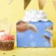 Christmas gift wrapping paper for red fox lovers! This design showcases a lovely red fox wearing a Santa Claus hat in a winter snowfall background with snowflakes and soft blue color.