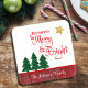 “May your days be merry & bright.” A playful illustration of a red script typography quote and green trees, against gold glitter stars and rustic red country barn wood backgrounds, helps you usher in Christmas and New Year. Feel the warmth and joy of the holiday season whenever you relax with your favorite beverage on this cute and fun personalized name coaster. These high-gloss, hard plastic custom coasters come in a set of six. Matching cards, envelopes, stickers, giftwrap, pillows, housewares, jewelry, and other products are also available in my “Christmas Days Be Merry & Bright” store collection. Order this as a housewarming gift for someone special, or even yourself!