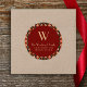 This elegant return address sticker features a burgundy circle on a background pattern of burgundy red, green and gold art deco fan shapes. Personalize the design with your monogram initial and family name in gold deco-style typography, with your address below in sans serif font.