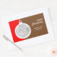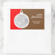 Christmas Decorative Ball rectangular Sticker features a christmas bauble which can be customized with your photo and own text, all against a red and brown background. Available in other shapes as well. © Morning 6
