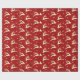 This decorative wrapping paper features a charming pattern of leaping deer against a rich red backdrop. Snowflakes and trees complement the playful silhouettes, creating a joyful and festive atmosphere.