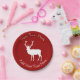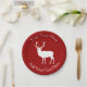 White Silhouette of a Stag. From a Vintage Engraving of a European Red Deer. The red background color is customizable.
