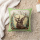 CHRISTMAS DEER,PINE CONE CROWN MONOGRAM Mint Green Throw Pillow