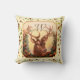 CHRISTMAS DEER,PINE CONES CROWN MONOGRAM Cream Throw Pillow