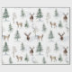 Modern watercolors illustration seamless Christmas pattern. Winter trees and deer seamless pattern.