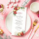Winter Christmas dinner menu card template watercolor red gold poinsettia pines gold sprinkles menu card
