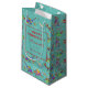 Christmas dinosaur pattern add name gift bag. An old fashioned Christmas just got a whole lot more fun with this prehistoric personalized gift bag. Add your names and greetings to this cute funny colorful T Rex, velociraptor, stegosaurus, pterodactyl, triceratops, brachiosaurus and brontosaurus in Santa hats enjoying the snow. A palaeontology fest for kids and adult dinosaur lovers and the perfect Christmas dinosaur design to bring dino humor to the festive holiday season. Better make sure you’re not naughty but nice or these cute dinosaurs will be after you. Colorful Original artwork on teal back created by artist Catherine Sweetman