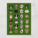 Illustration of many different breeds of dogs. They are dressed in Holiday attire. These dogs head are used to create the shape of a Christmas tree for the Holiday season.