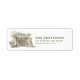 These adorable Christmas return address labels features a cute pup sitting next to a fireplace all decked out for the Christmas holiday.