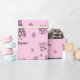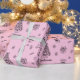 This Christmas wrapping paper features a cute doodle illustration. You can personalize it by adding a custom name to the print. Pink Christmas wrapping paper.