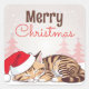 Christmas Dreams - Sleeping Kitten in Santa Hat Square Sticker