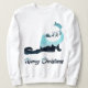 Celebrate the season with a purr-fect blend of festive charm and feline elegance. This white sweatshirt features a stunning silhouette of a cat filled with a dreamy winter scene: Santa’s sleigh gliding across a glowing full moon, reindeer soaring above a peaceful pine forest, and a gentle “Merry Christmas” greeting in frosty blue tones. It’s a wearable holiday card for cat lovers and Christmas dreamers alike.