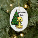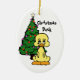 Christmas Duck Ornament. Cartoon Duck in front of a lighted Christmas tree