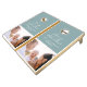 Christmas elegant script dusty blue modern elegant holiday Christmas fun corn hole game.