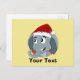 Personalized design with illustration of a head of cute little elephant with Santa's hat, Christmas holidays design for children,illustrated by Radka Kavalcova