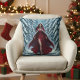 Christmas Elf in Red in Snowy Winter Forest Throw Pillow