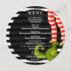 Round menu cards feature elf legs in striped tights and green boots on black and white stripes and gold dots and your details in chic white lettering. Perfect for a Christmas holiday party, wedding reception, wedding rehearsal dinner, anniversary party or any special event with a sit down dinner. Easily personalize with your dinner menu and details. LOTS OF COLORS available in our store.