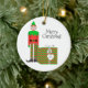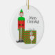 Merry Christmas! A ceramic ornament with a Christmas elf, chevron version. Customize the ornament with your own text and name among other options.