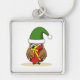 An illustration of a shy happy elf owl with green santa hat and red present with yellow ribbon. This cute cartoon design is a gift idea for owl lovers, bird lovers, and fantasy or magical movie lovers. Are you excited to receive your gift on Christmas?