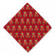 I really like this bandana. It is a little small, but it's made of t-shirt material so it stretches. I tie mine before I put it on which makes it easier since it is small. Once it's on, it NEVER comes untied and I rarely have to redo the knot. The printing is as shown. Crisp and clear borders.