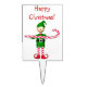 Festive Christmas cake topper with my artwork of a happy elf holding a big candy cane. Text says "Happy Christmas!"