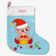 Christmas elf with Christmas balls on light blue Large Christmas Stocking