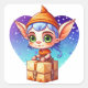 Cute elf with a Christmas gift and blue heart background festive holiday stickers.
