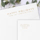 A simple and elegant holiday return address envelope wrap label featuring the modern minimal typography quote “Happy Holidays” in gold on a clean white background. This timeless design brings a touch of luxury and sophistication to your festive mail while keeping the look sleek and understated. Personalize it easily with your name, address, and greeting for a unique and thoughtful finishing detail. Perfect for pairing with our matching Christmas card range in the same elegant style, this gold and white return label adds a polished, coordinated look to your envelopes. A luxurious yet minimalist choice that makes your holiday correspondence stand out beautifully this season.