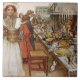 Vintage fine art painting of traditional family gather in Sweden for Christmas. Colorful painting by Scandinavian artist Carl Larsson.