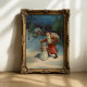 This vintage Christmas card by Hermann Wolff (German, 19th/20th century) depicts Santa walking through a snowy night alongside a little angel girl, delivering gifts to eager children. Rendered in a charming vintage style, the artwork captures the magic, warmth, and festive spirit of the holiday season. Perfect for greeting cards, holiday wall art, or gifts, it brings nostalgic charm and timeless holiday cheer to any collection. Its evocative imagery celebrates traditional Christmas traditions and the wonder of winter nights.