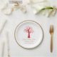 Beautiful red and gold colored Christmas holiday event paper plates. Simple yet modern red and gold graphic tree and gold bird design. Ideal for red white and gold winter or Christmas holiday themed event, buffet or feast. Personalize with your own event and date. © Art and design by Sarah Trett for www.mylittleeden.com