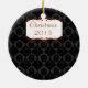 Christmas Family Photo Black & Gray Damask Ceramic Ornament