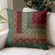 Christmas Faux Burlap Patchwork Green Red Brown Throw Pillow