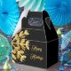 This favor box is shown in a festive Christmas holiday gold snowflake print.