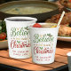 Celebrate in style with these “Christmas Festive Modern Party Red Typography Paper Cups.” Featuring the festive phrase “Believe in the Magic of Christmas” in green, gold, and red script, surrounded by holly berries, gold snowflakes, glittering stars, and cheerful red and green dots, these cups bring instant holiday cheer to your gatherings. Personalize with your custom best wishes text or family name in bold red typography on a clean white background for a unique seasonal touch. Perfect for Christmas parties, holiday dinners, and family Xmas Eve celebrations.