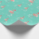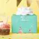 Stylish design with a retro touch featuring festive pink flamingos wearing red Santa hats, stars and palm trees decorated with baubles set against an aqua background . A customizable design for you to personalise with your own text, images and ideas. An original digital art image created by QuirkyChic.