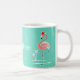 Stylish design with a retro touch featuring festive pink flamingos wearing red Santa hats, stars and palm trees decorated with baubles set against an aqua background. Mug customizable design for you to personalise with your own text, images and ideas. An original digital art image created by Quirky Chic.