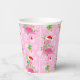 Pink Christmas flamingos wearing string lights and a Santa hat on a pink background with snowflakes and festively decorated palm trees. It's a cute pattern for celebrating Christmas with a tropical vibe! Shown here on customizable paper party cups with optional lids. You can easily resize the pattern to your preference and select your favorite background color. Great for Christmas parties at home, school, or the office!